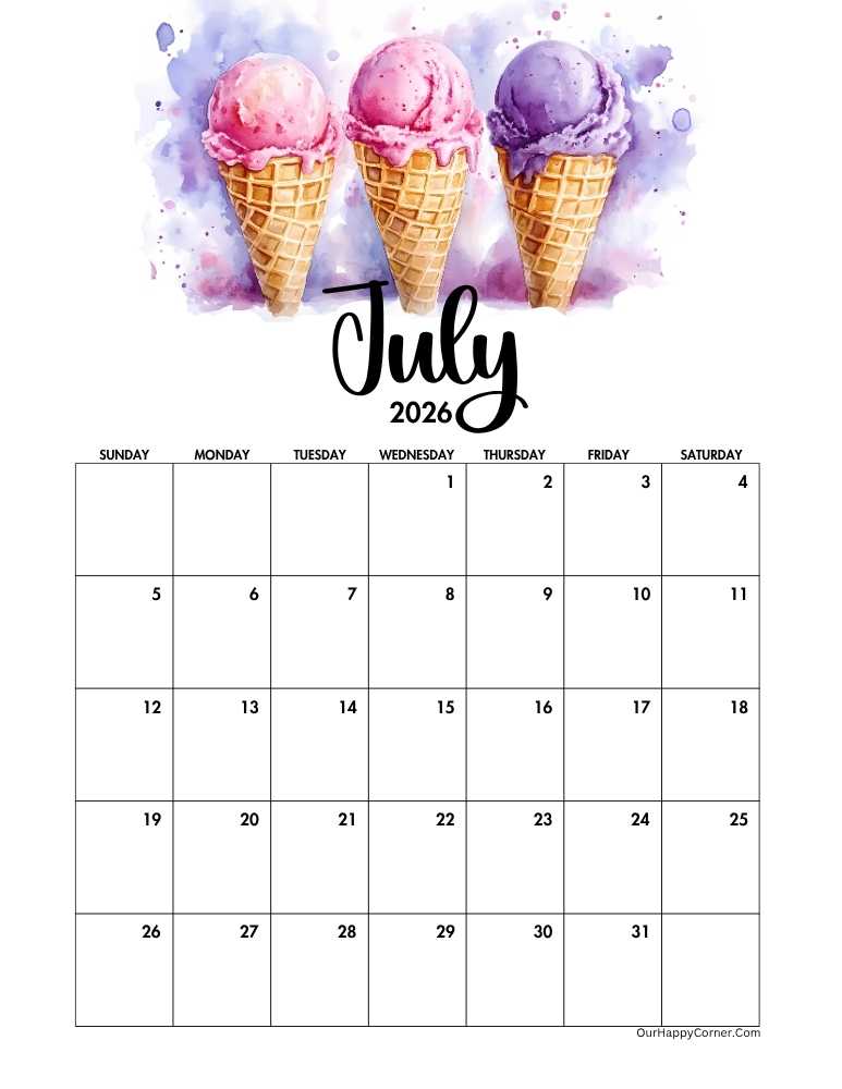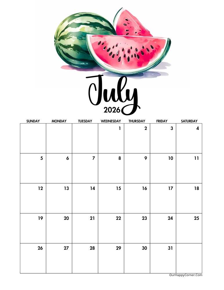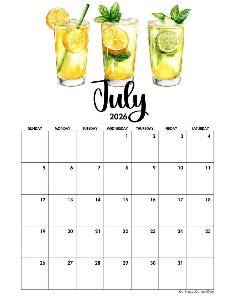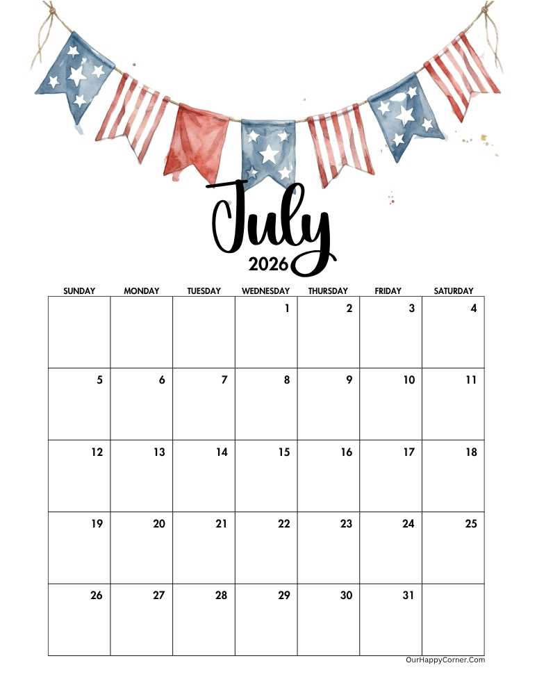 If you prefer a wider, more spacious layout, our 2026 horizontal July calendar printables are a perfect fit.
