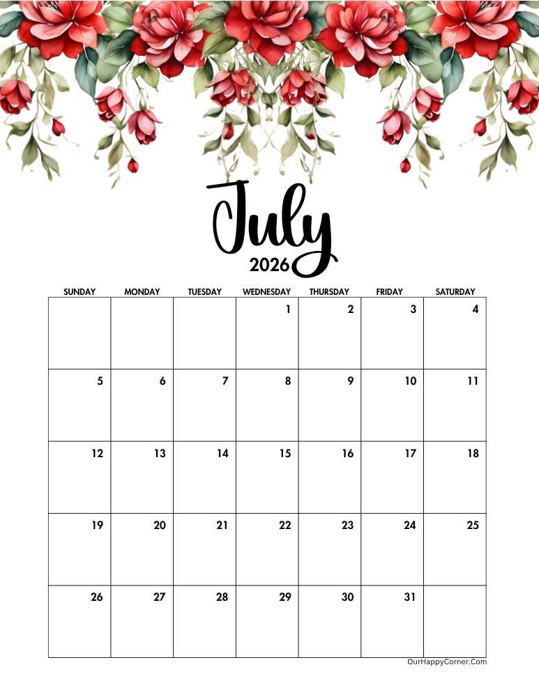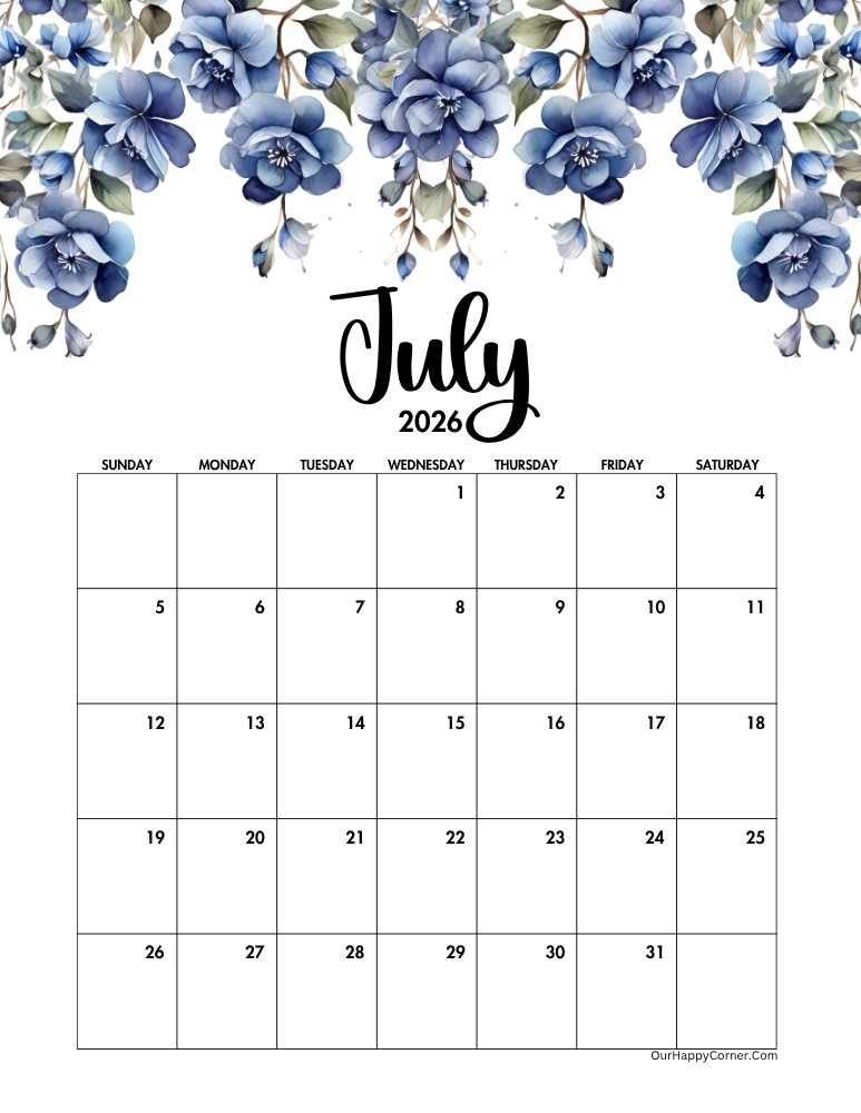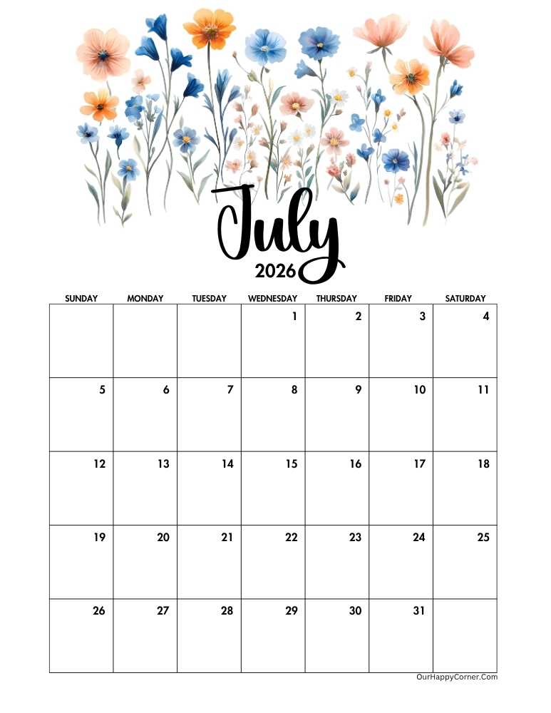 Brighten your planning routine with our 2026 floral July calendar printables, where elegance meets summer charm.